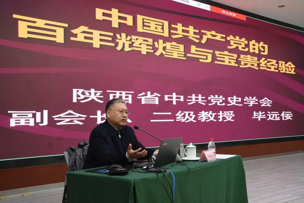3月27日,秦川集團(tuán)開展“學(xué)黨史、明初心、擔(dān)使命”專題培訓(xùn),邀請(qǐng)中共陜西省委黨校教授、陜西省黨史學(xué)習(xí)教育宣講團(tuán)成員畢遠(yuǎn)佞教授圍繞“中國(guó)共產(chǎn)黨的百年輝煌與寶貴經(jīng)驗(yàn)”主題進(jìn)行講解。