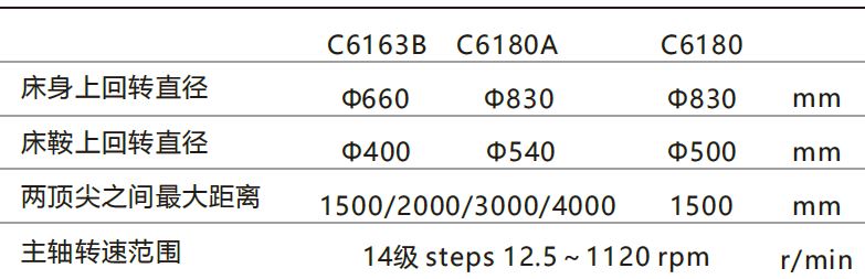 床身有1500mm,2000mm,3000mm,4000mm四種規(guī)格可選。(C6180只有1500mm床身規(guī)格)。