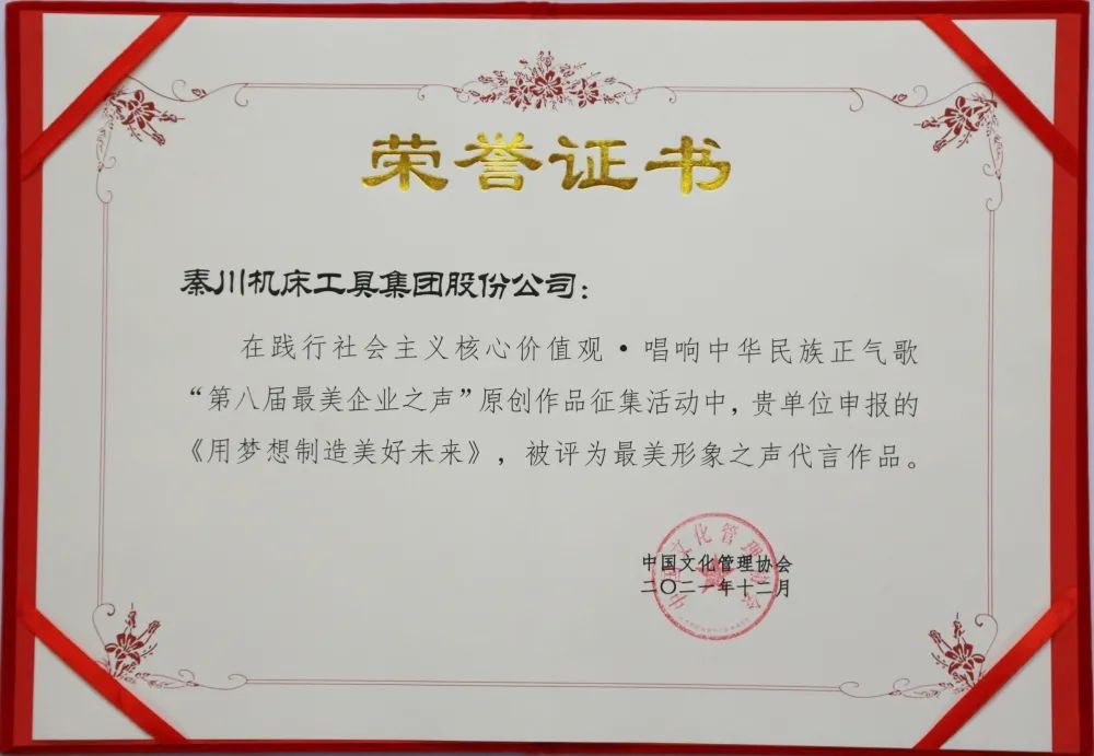 秦川集團(tuán)榮獲“新時(shí)代企業(yè)黨建實(shí)踐創(chuàng)新·典范單位”榮譽(yù)稱(chēng)號(hào),選送的原創(chuàng)短視頻作品《用夢(mèng)想制造美好未來(lái)》獲“最美形象之聲代言作品”。