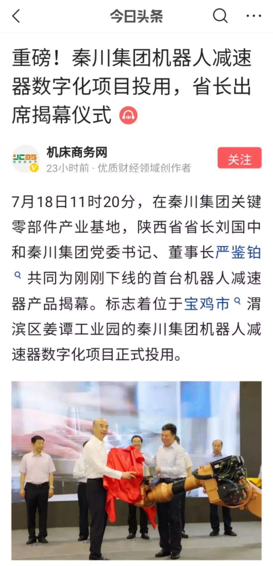 導(dǎo)讀:7月18日,秦川集團(tuán)工業(yè)機(jī)器人減速器數(shù)字化項(xiàng)目正式投用。機(jī)器人關(guān)節(jié)減速器產(chǎn)品是秦川集團(tuán)聚焦“五大戰(zhàn)略”和“5221”發(fā)展目標(biāo)——“高端制造”的重要內(nèi)容,是集團(tuán)精密制造、躋身國(guó)家先進(jìn)制造基地行列的又一力作。